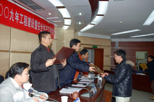 會上,孫志祥代表公司與各參建單位簽訂了《2009年安全目標責任書》。