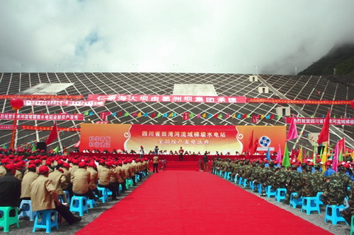 2009年8月28日,在川投田灣河公司誕辰七周年之際,四川省田灣河流域梯級(jí)水電站全部投產(chǎn)發(fā)電慶典在仁宗海大壩前隆重舉行。省國(guó)資委副主任梁志倉、成都電監(jiān)辦專員張健、省國(guó)資委產(chǎn)權(quán)處處長(zhǎng)舒仕能、川投集團(tuán)總經(jīng)理郭勇、省政協(xié)經(jīng)委副主任、原川投集團(tuán)總經(jīng)理秦萬祥、雅安市市委常委、秘書長(zhǎng)、市總工會(huì)主席楊凱、甘孜州州政府副秘書長(zhǎng)易武,省電力公司、省安監(jiān)局、成都電監(jiān)辦、省建行、川投集團(tuán)、川投能源、甘孜州、雅安市、康定縣、石棉縣、草科鄉(xiāng)、田灣鄉(xiāng)的領(lǐng)導(dǎo)以及工程建設(shè)各參建單位的領(lǐng)導(dǎo)、來賓和建設(shè)者六百余人共同參加了慶典。慶典活動(dòng)由川投集團(tuán)副總經(jīng)理蔣國(guó)俊主持。