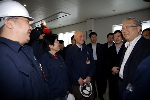2010年4月16日下午,全國人大常委會副委員長路甬祥率全國人大《科學(xué)技術(shù)進步法》執(zhí)法檢查組,深入新光硅業(yè)公司1000噸/年多晶硅項目現(xiàn)場調(diào)研。