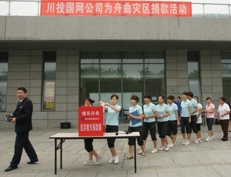原本有著隴上桃花源美譽的甘肅舟曲于2010年8月7日遭受特大山洪泥石流災(zāi)害,損失慘重。災(zāi)情發(fā)生之后,黨中央國務(wù)院高度重視,胡錦濤總書記對搶險救災(zāi)作出重要指示,要求全力做好抗洪救災(zāi)工作。溫家寶總理親赴災(zāi)區(qū)指導(dǎo)救援工作。人民子弟兵奮力搶險,全國各族人民踴躍支援災(zāi)區(qū),竭力搶救每一個生命, 為災(zāi)區(qū)人民貢獻自己的力量。為此,在川投集團一直以來倡導(dǎo)的友愛互助、大愛無疆的精神指引下,秉承 “一方有難,八方支援”的民族美德,川網(wǎng)公司倡導(dǎo)、組織全體員工行動起來,向災(zāi)區(qū)人民伸出援助之手,為災(zāi)區(qū)重建獻上自己的一份力量。
