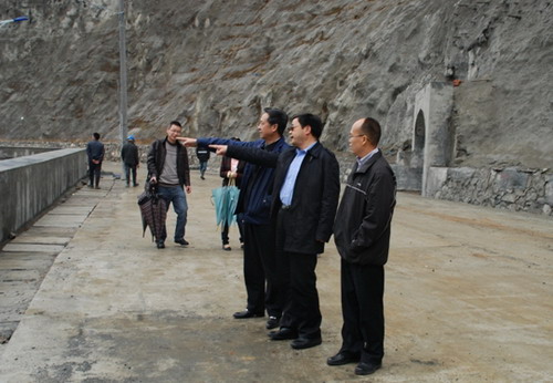 2011年4月21日,省委農(nóng)工辦主任張寧、雅安市副市長朱玉貴、石棉縣縣委書記王加良一行在草科鄉(xiāng)檢查工作期間,到田灣河公司營地和電站現(xiàn)場考察調(diào)研,公司黨委書記、總經(jīng)理孫志祥陪同考察。