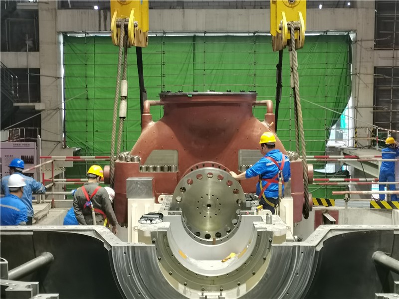 2023年10月24日16時08分,資陽燃氣電站主廠房#1機高中壓缸順利就位。